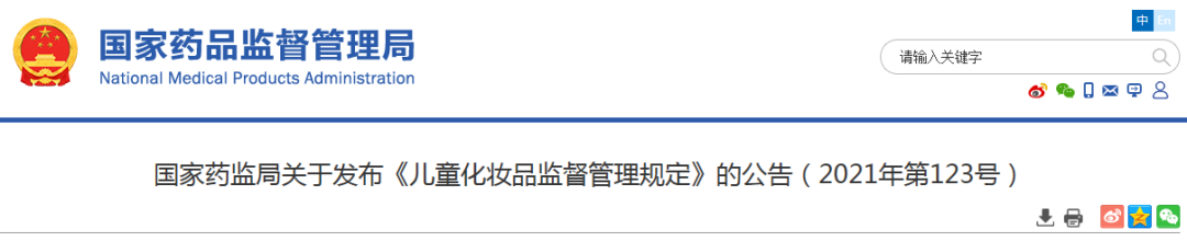 为规范儿童化妆品生产经营活动,加强儿童化妆品监督管理,保障儿童使用化妆品安全,依据《化妆品监督管理条例》等法律法规,国家药监局组织制定了《儿童化妆品监督管理规定》(以下简称《规定》),现予公布,并就《规定》实施有关事宜公告如下: