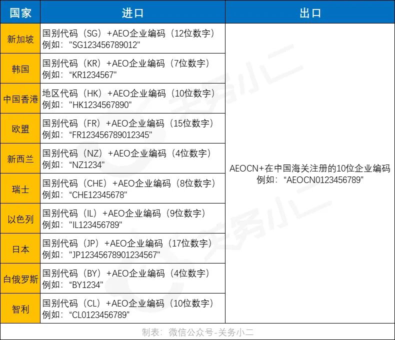 中国的AEO高级认证企业向互认国家(地区)出口货物时,应当将AEO高级认证企业编码(AEOCN+在中国海关注册的10位企业编码)通报给该国家(地区)进口商,该国家(地区)进口商按照当地海关规定填写申报,互认国家(地区)海关在确认中国AEO企业身份后,将会给予相关便利措施。